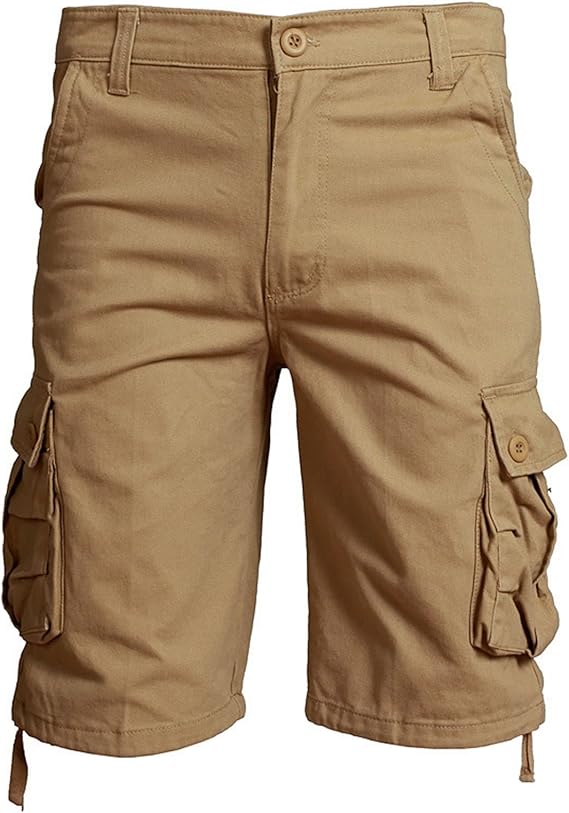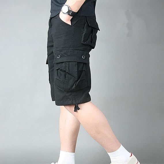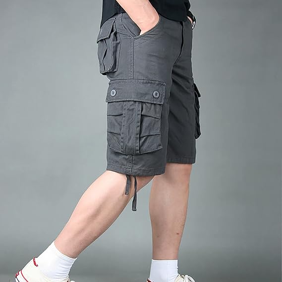 - Cómodos y funcionales: Pantalones cortos cargo para hombre de 100% algodón, suaves, transpirables y duraderos, con cintura elástica y cierre de botón.